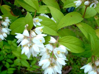 | かすかな香りがするのも梅にたとえられる由縁か。 | 岡山県自然保護センターで撮影。鐘状の五弁花。別名はウノハナ、小学唱歌にもでてくる。初夏の候、バイカウツギより小さく下向きに咲く。 |