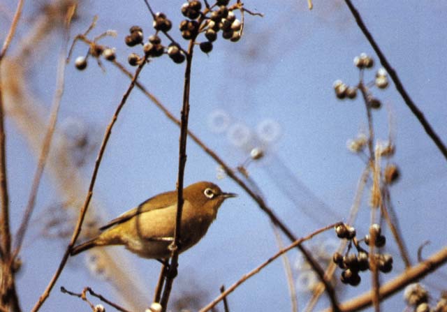 | 説明 | 主に広葉樹林に棲む。極めて普通の鳥で,姿も鳴き声も共に美しい。公園や人家にも現れる。春先などはツバキの蜜をを吸いに私の家にもやってくる。メジロをウグイスだと勘違いしている人も時々ある。操山にも,メジロは特に多く,四季を通じて,耳,目を楽しませてくれる。群をなして行動することが多い。 |