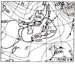 上の第2図は、蒜山高原から一番近いところにあって上層大気の様子を測定している鳥取県米子〔よなご〕市でのグラフ参考文献3)なんだ。このグラフの数値が測定されたのは、写真を撮った日の午前9時なんだ。だから、写真の時刻とほとんど違わないときに測定されているんだよ。