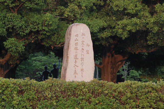 「おかやま桃太郎まつり」の練習に励む若者の姿も風物のひとつです。スポーツの森です。 |