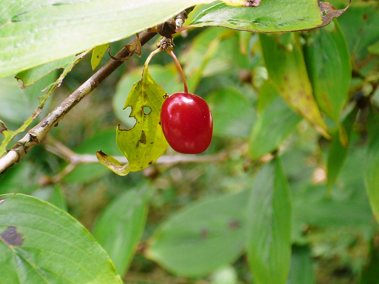 | 10月ころの完熟、少し前に偽果(ぎか)を採取して天日で乾燥するが、これが生薬で山査子という。 |